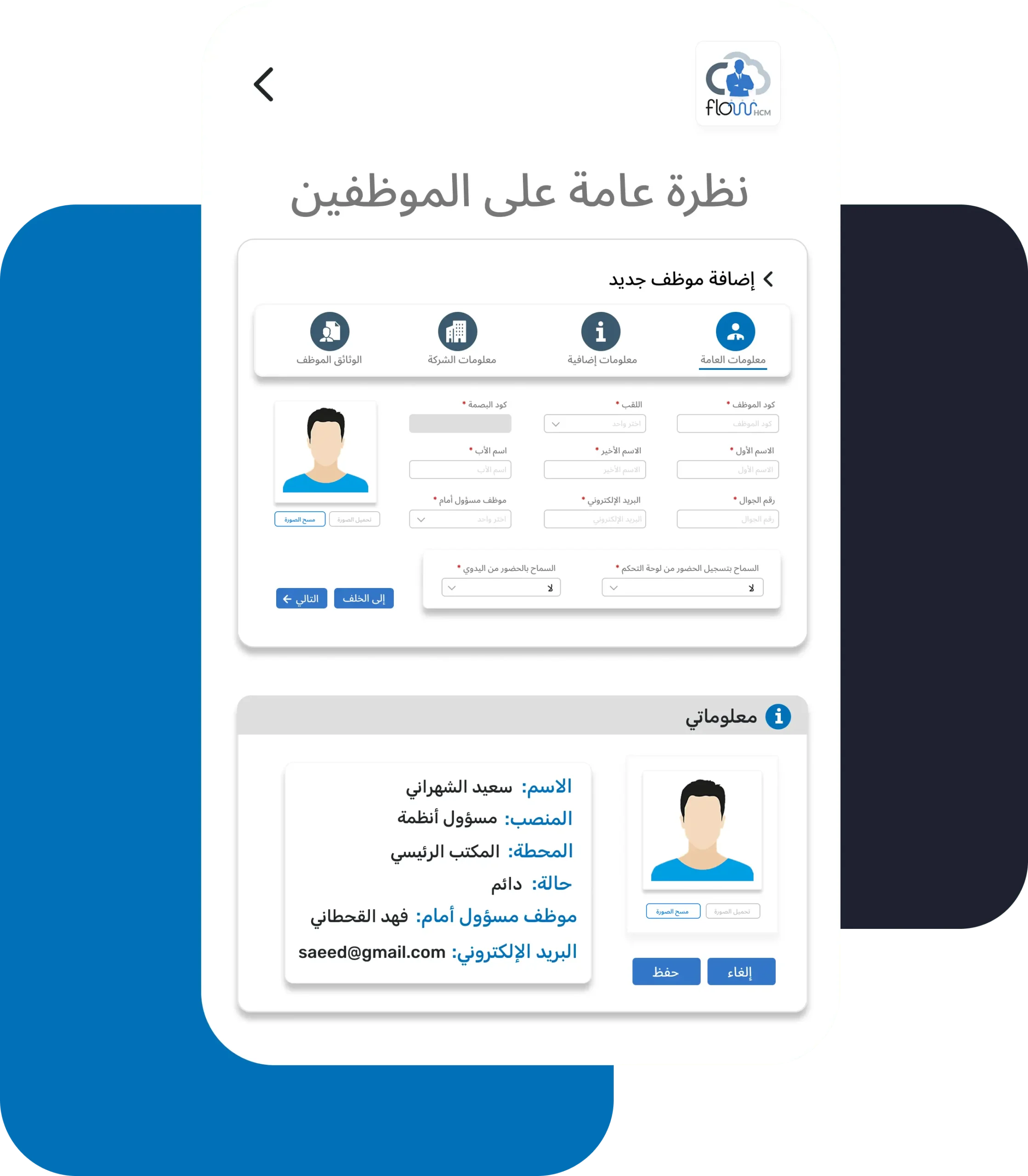 وحدة إدارة الموظفين في FlowHCM تساعد المنشآت على حفظ بيانات الموظفين بسهولة،