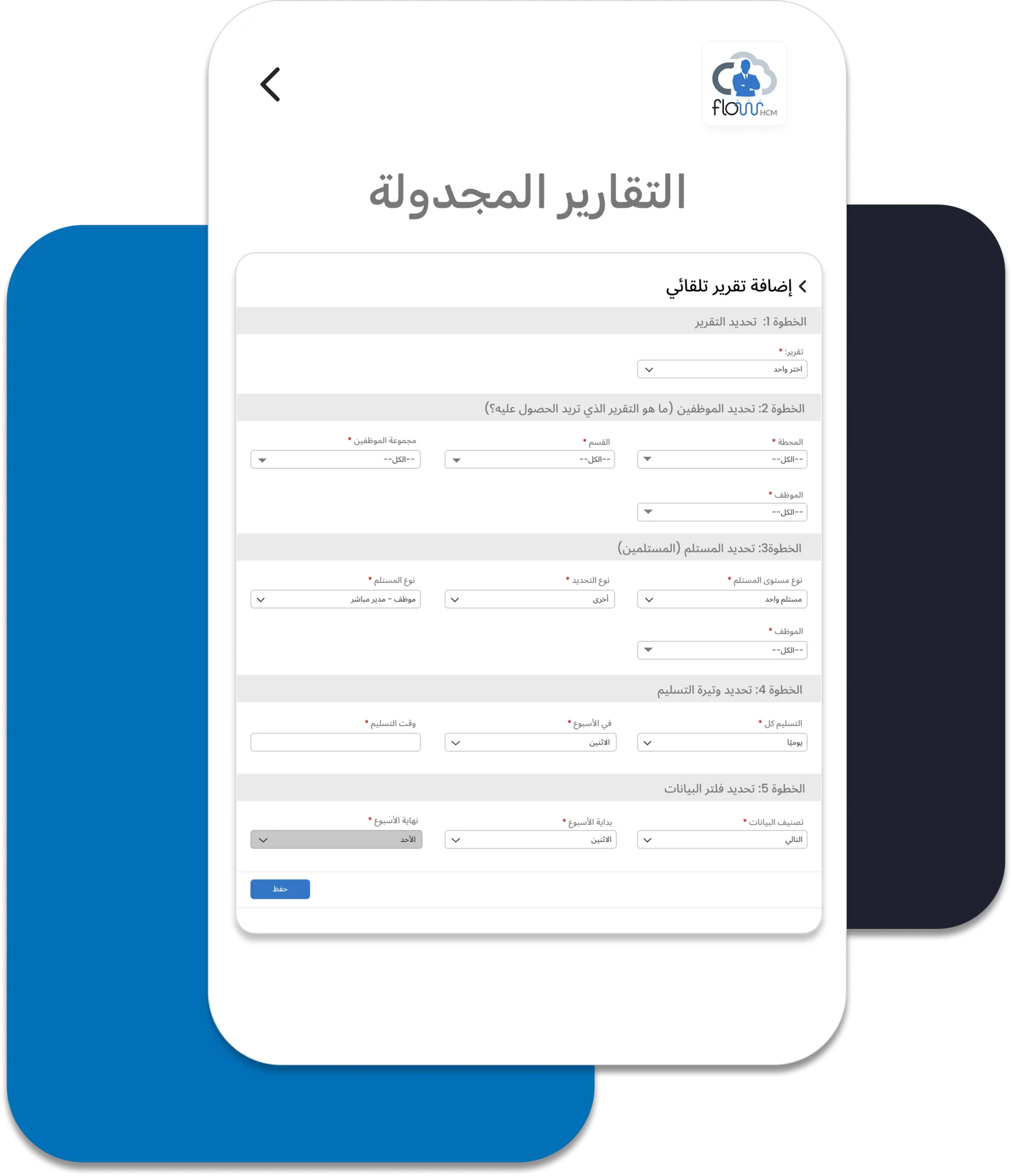احصل على تحكم كامل في التقارير مع برنامج إدارة التقارير المجدولة من FlowHCM. أتمت توليد التقارير،